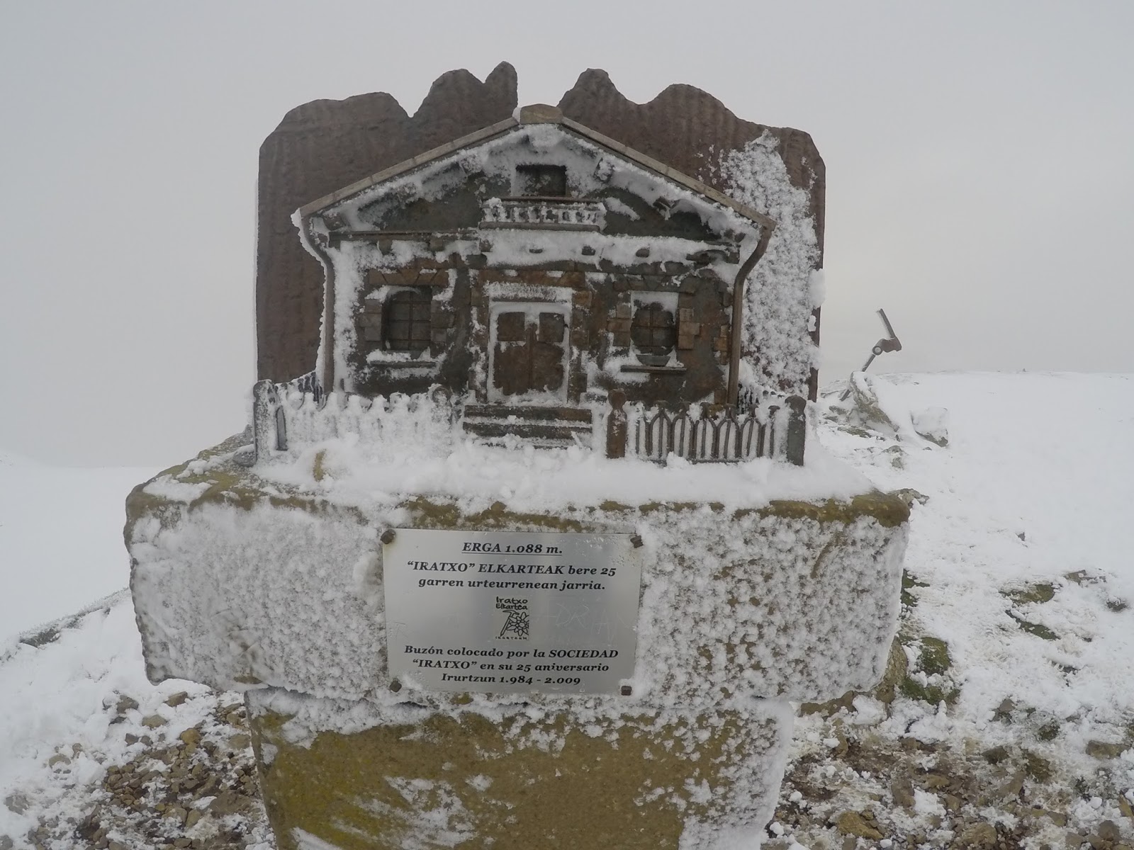 Tomaremos la senda que discurre por la estribación de Artola entre la densa población de hayas, que espolvorean sobre nosotros nieve. Ganamos altura siguiendo la divisoria de aguas y a cada metro nos encontramos el terreno mas nevado, lo que nos permite amenizar la subida con alguna "guerrilla" de bolas de nieve,solo nos falto montar el muñeco de nieve, ademas de poder disfrutar a ratos de invernales vistas a las montañas cercanas cuando las caprichosas nubes nos lo permitían.