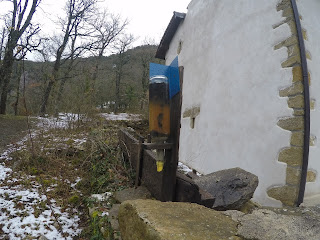 Tras inmortalizar el momento y saborear el aire puro de la cima, arrancamos la bajada que se vaticina divertida. Con resbalones y alguna "pelea" mas con matorrales perdemos altura por la vertiente contraria hasta plantarnos en el collado de Ollakarizketa, en el que buscamos un lugar a cubierto para degustar el almuerzo y algo caliente, que en estos días fríos se agradece.